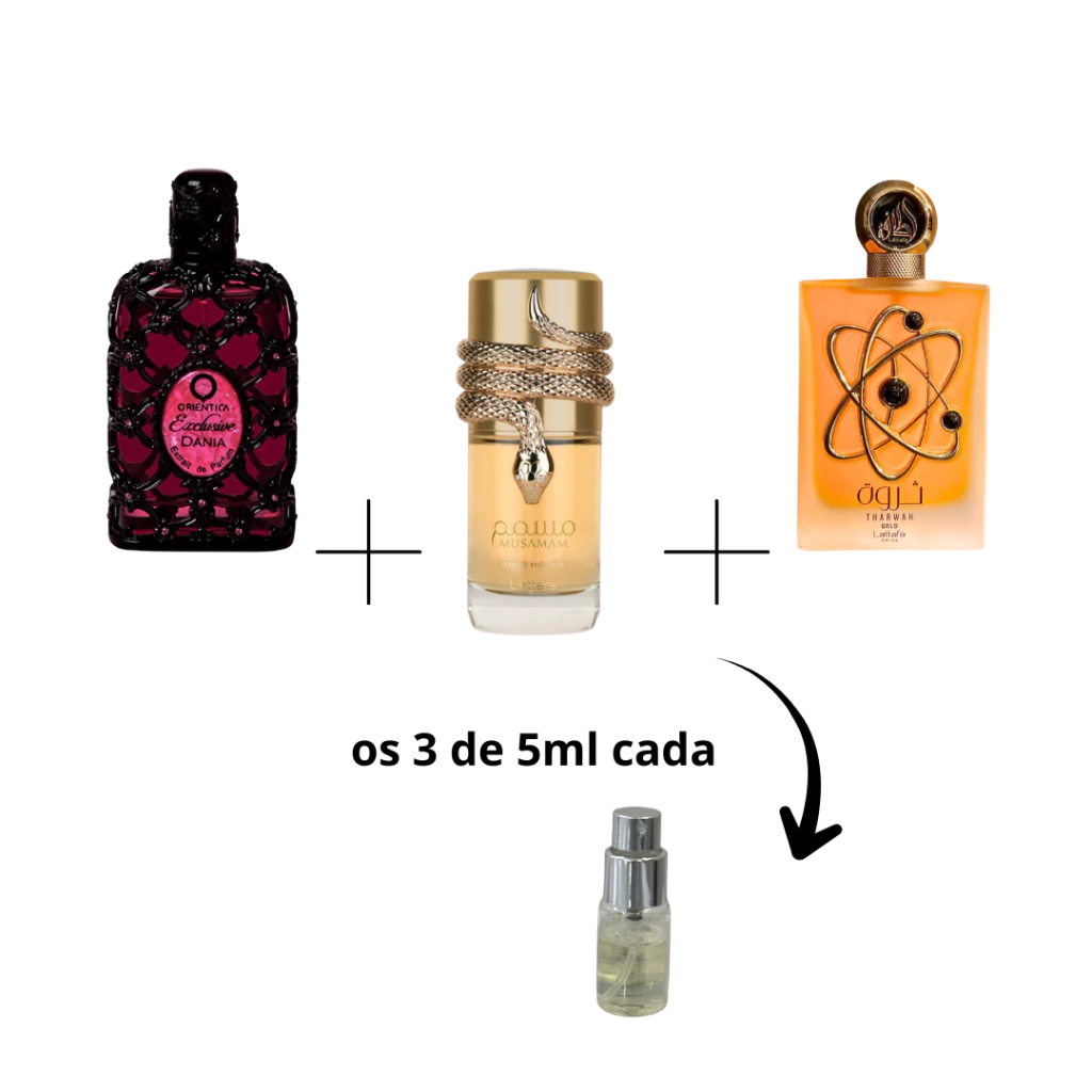 COMBO PROMOCIONAL DECANTES 5ML CADA: DANIA EXCLUSIF + THARWAH GOLD + MUSAMAM