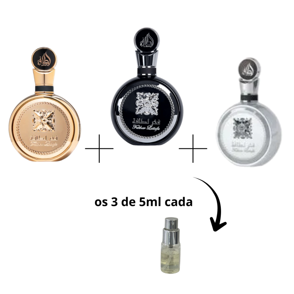 COMBO PROMOCIONAL DECANTES 5ML CADA: FAKHAR GOLD + FAKHAR BLACK + FAKHAR PLATIN